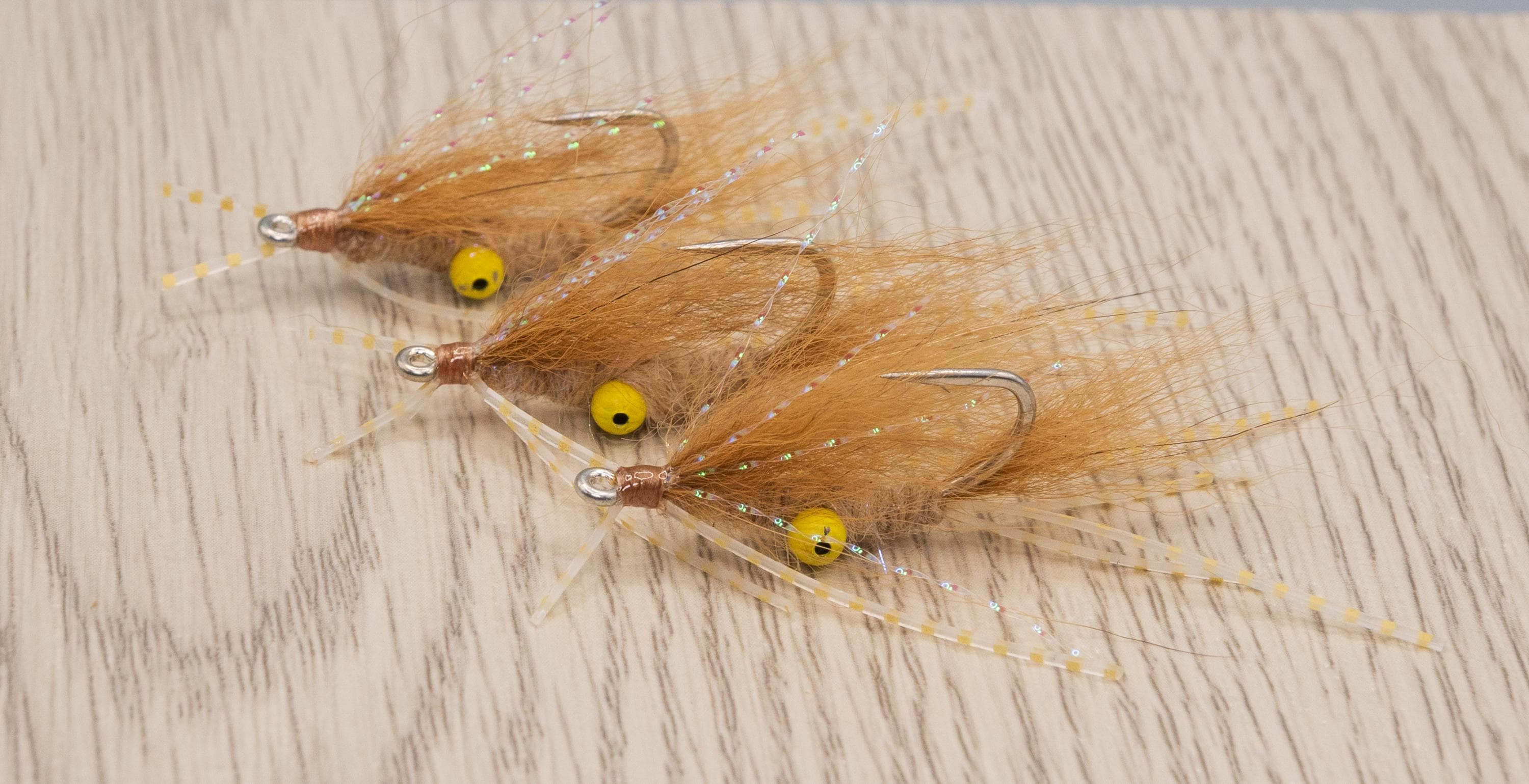 Tied specifically for Ascension Bay Bonefish. Yellow eyes and sand colored sili-legs are the ticket. Also, with the dubbed body and natural materials this fly is guaranteed to land softly and not spook the unusually skittish Ascension Bay Bonefish.